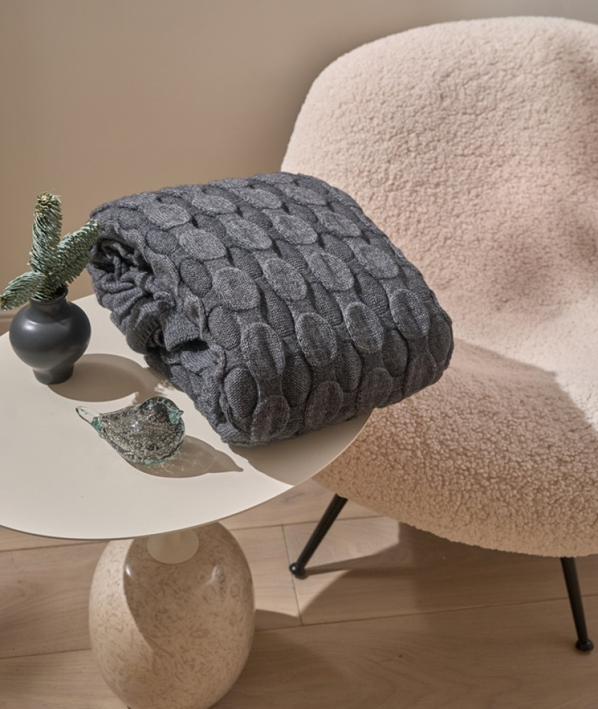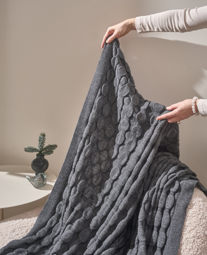 Оригинальный плед BUBBLES связан с эффектом 3D рисунка. Плед от Торговой марки Luxberry не только необыкновенно стильный, он еще и теплый, так как в составе 50% шерсти мериноса,. Его можно взять на пикник, дачу или природу, он стильно украсит домашний интерьер и будет прекрасным подарком для близких. Этот чудесный рисунок воздушных пузырьков нарисовала нам художница Юлия Прусакова!