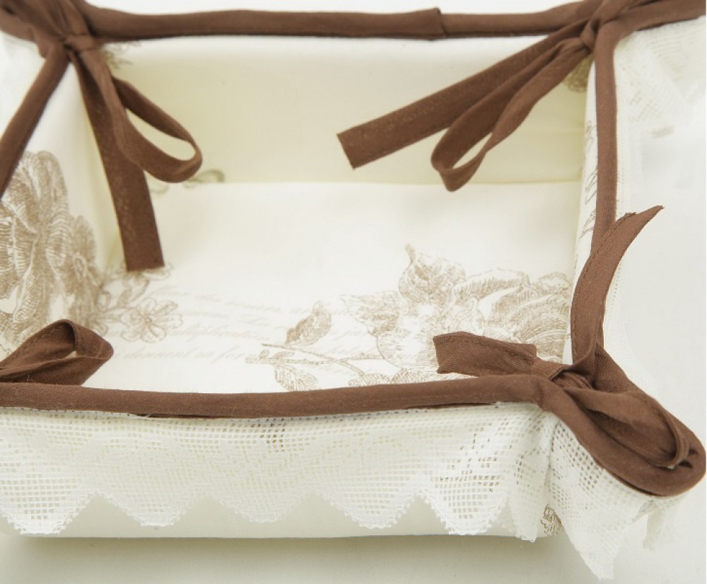 Красивая мягкая корзинка на завязках, декорированная кружевом, с набором 3 кружевные салфетки.